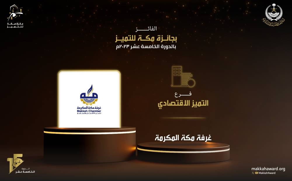 حصلت غرفة مكة، التي يرأسها عبدالله صالح كامل، ومهرجان ولي العهد للهجن على جائزة مكة للتميز الاقتصادي، التي أعلنت عنها إمارة منطقة مكة المكرمة، والخاصة بجوائز مكة للتميز في دورتها الخامسة بأفرعها التسعة.