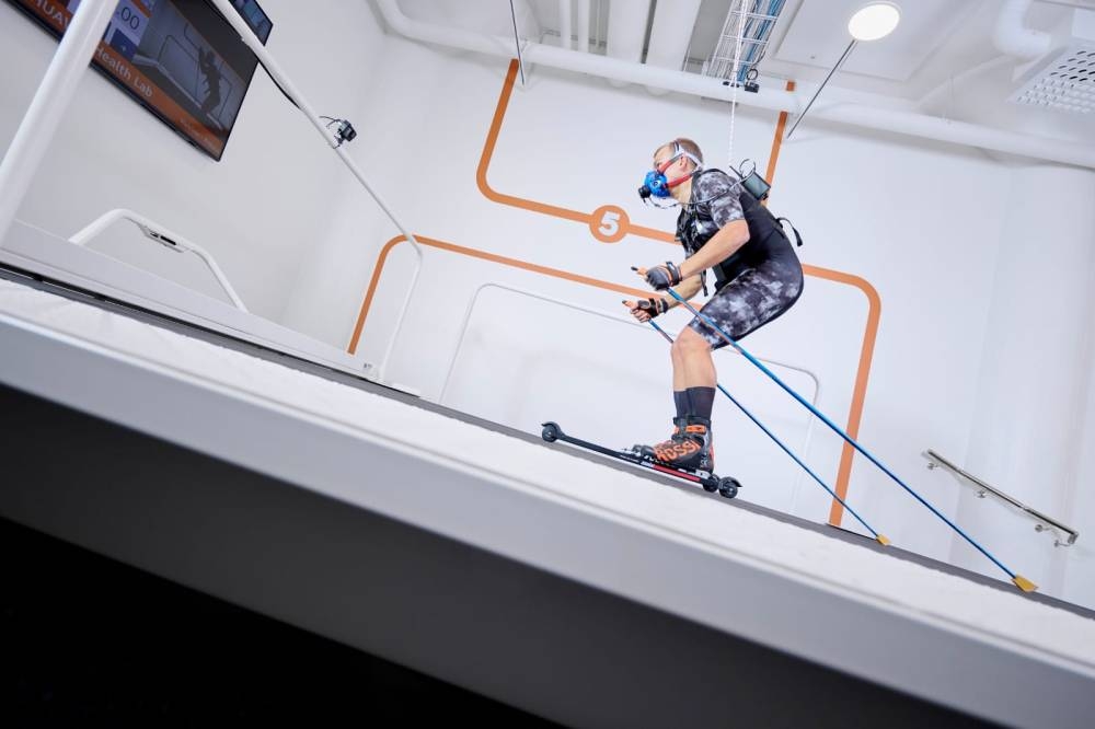 يتضمن المختبر جهاز محاكاة تزلج بسرعة قابلة للتعديل ومنحدر وطرق وأعمدة تفاعلية. يحتوي جهاز المحاكاة أيضًا على حساسات تكتشف سرعة المستخدم وموقعه وزوايا نحته وقوته وبيانات أدائه.
