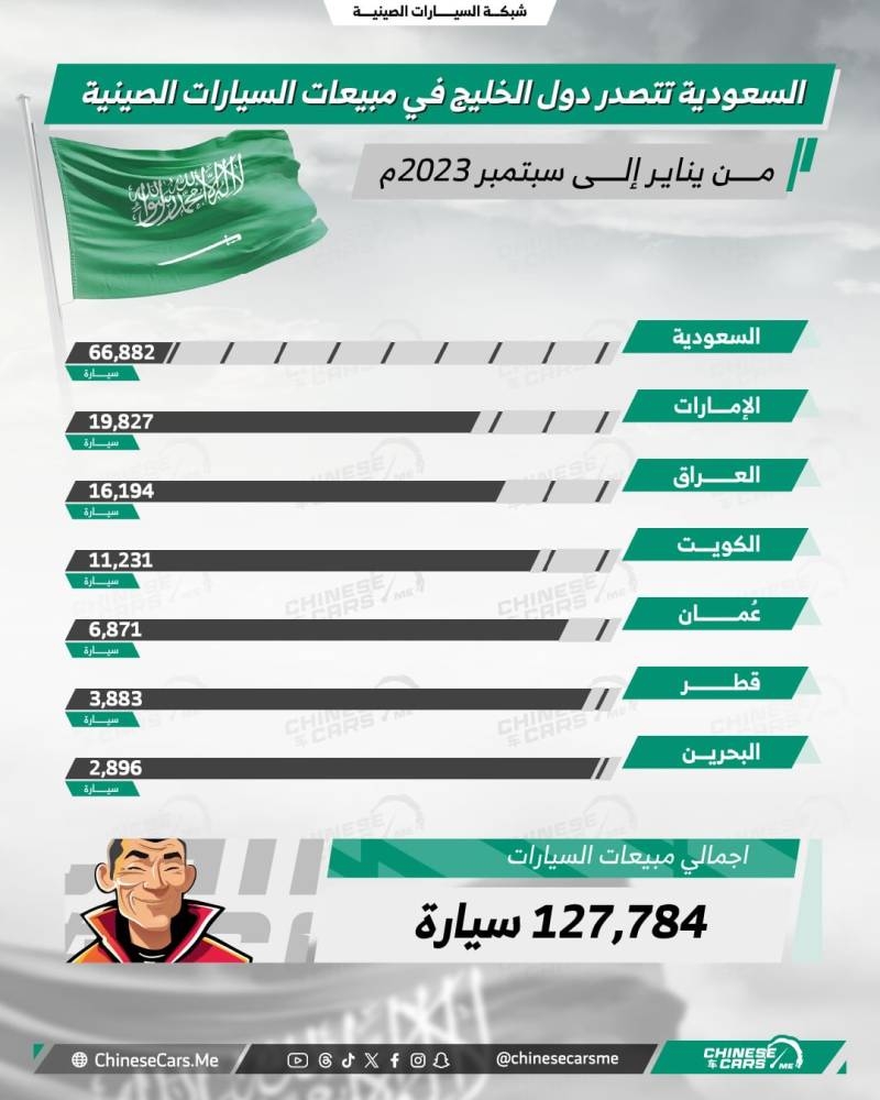 السعودية تتصدر دول الخليج في مبيعات السيارات الصينية لعام 2023