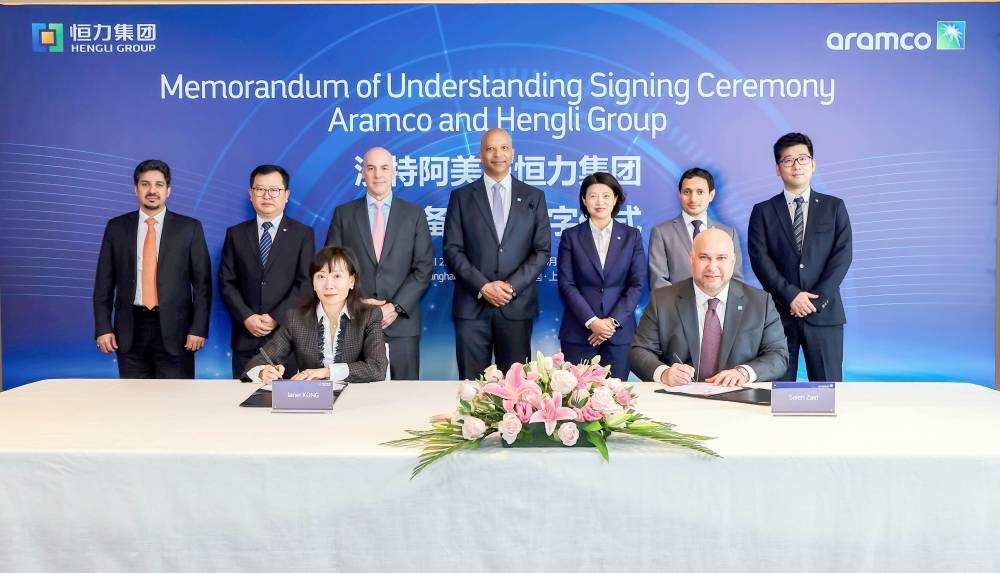 جانب من توقيع مذكرة التفاهم بين شركة أرامكو آسيا وشركة هنجلي.