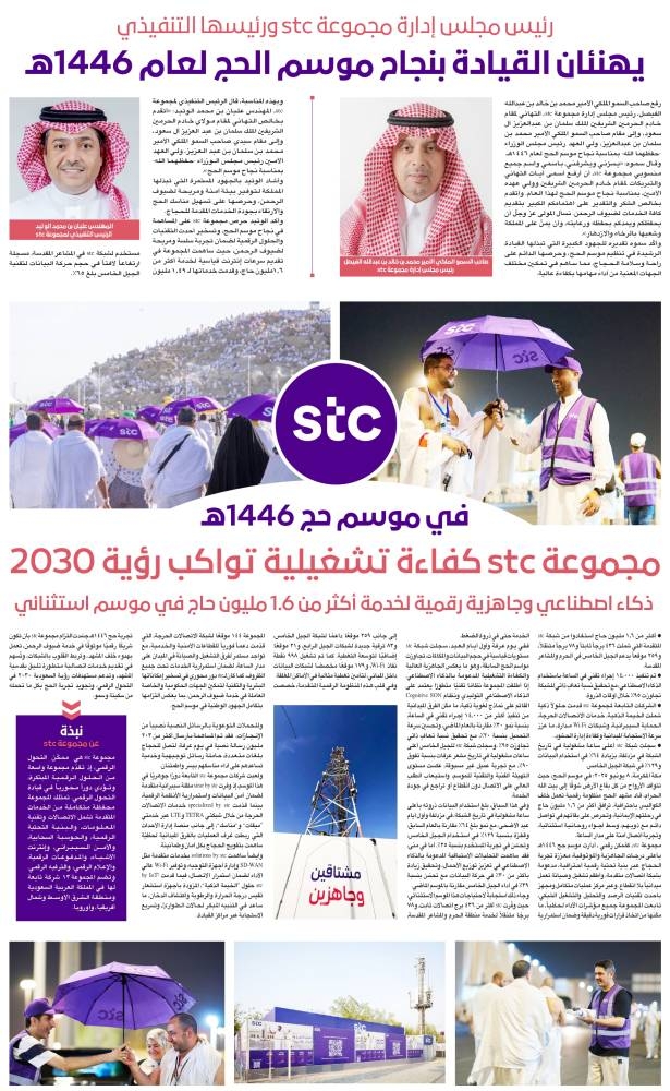 The great success achieved by the stc group during the Hajj season of 2025 was the result of meticulous plans and comprehensive strategies set by the group, mobilizing its resources in preparation for a season that witnessed an exceptional density of crowds within a specific temporal and spatial framework. The group employed a wide range of advanced digital services and solutions that brought about a qualitative leap in Hajj services through an integrated and interconnected system that monitors environmental conditions, manages crowds, and supports control rooms with real-time data by providing secure communication solutions, reliable networks, and advanced cloud services to ensure the safety and security of pilgrims and enhance the efficiency of field response.