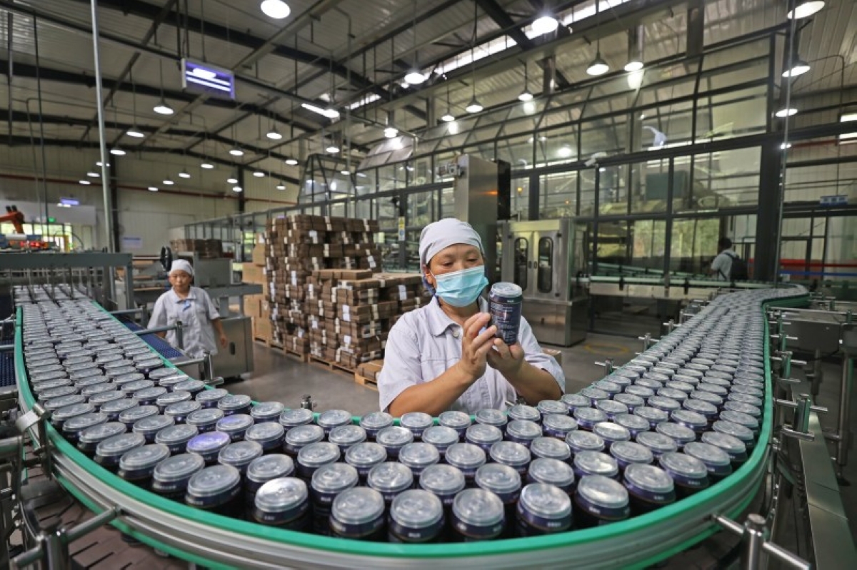 تواصل العديد من الشركات المتخصصة في الأغذية تكثيف صناعاتها خلال الفترة الحالية، تزامناً مع ارتفاع الطلب على المنتجات المعلبة من المستهلكين. وتظهر الصورة عاملة في أحد المصانع، خلال مراقبتها جودة المنتجات بعد الانتهاء من تصنيعها. (إيكونومي دايلي الصينية)