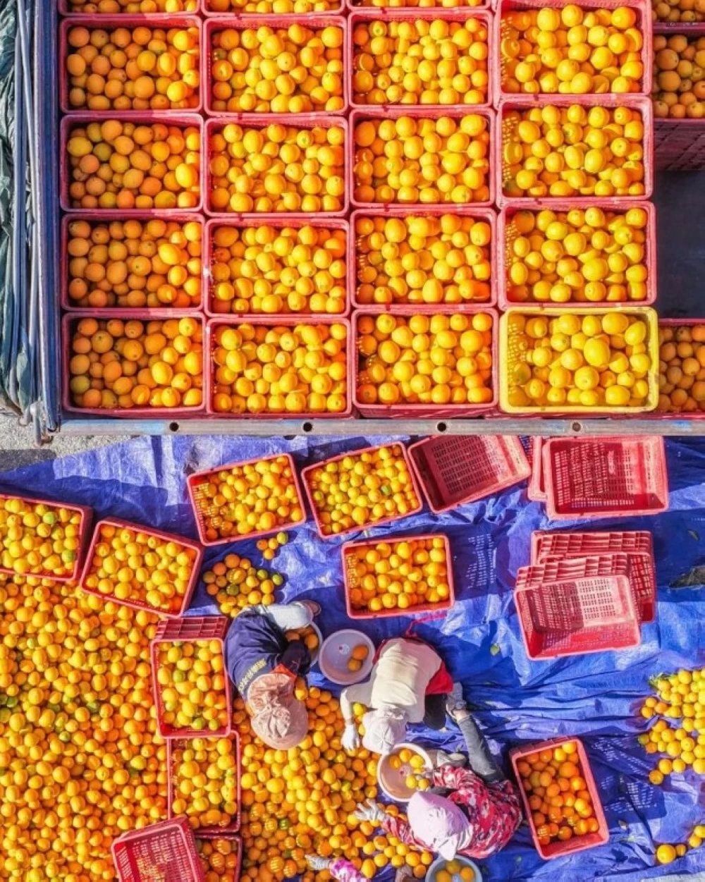 يستمر العديد من المزارعين في حصاد بعض أصناف البرتقال في الفترة الحالية مع انطلاق موسم جني المحصول. وتُظهر الصورة مجموعة من المزارعين أثناء نقل البرتقال استعداداً لطرحه في الأسواق. (إيكونومي دايلي الصينية)