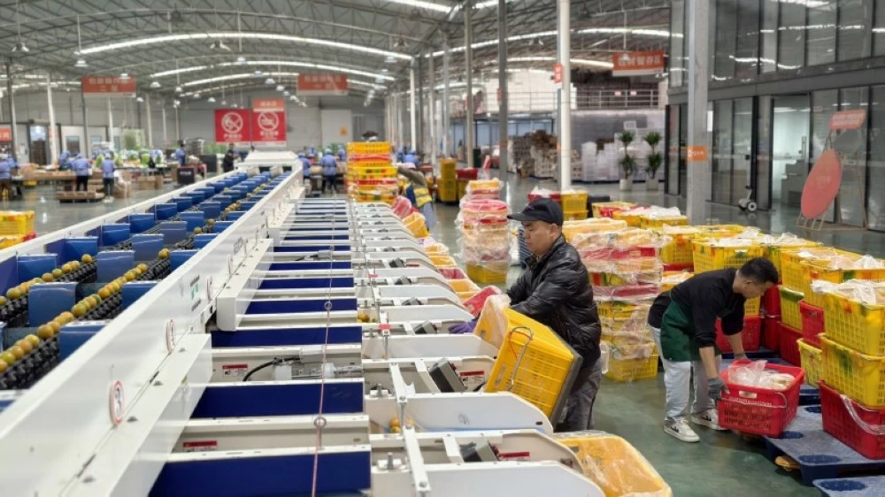 Agricultural mechanisms have evolved among many farmers by relying on specialized machines for sorting and gathering the crop according to its age and ripeness. The image shows a farmer monitoring the crop in one of the workshops in preparation for packaging and selling it in the markets. (Chinese Economy Daily).