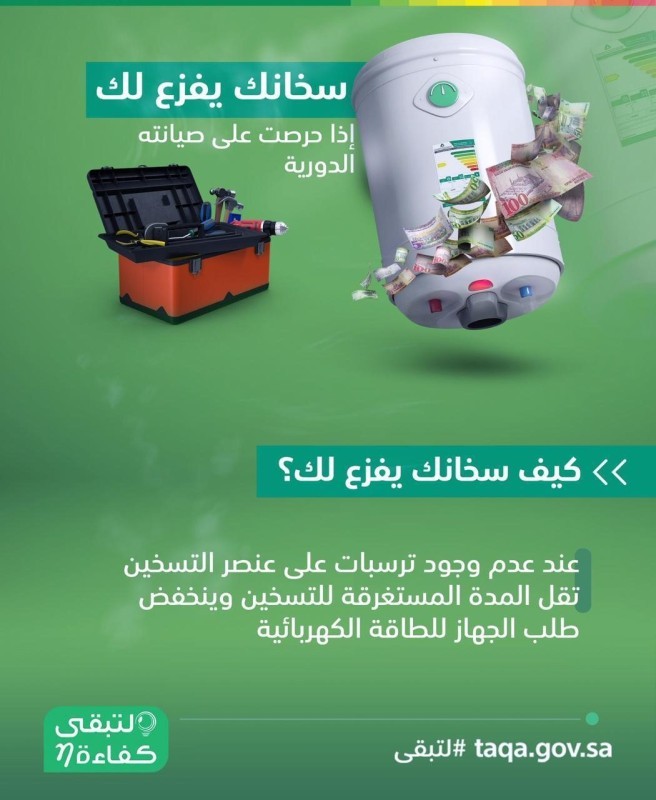 وذكر المركز أسباباً عدة تسهم في خفض الاستهلاك الشهري للسخانات، وتطيل عمرها، وتوفر الأمان، ما يجعل «#سخانك_يفزع_ لك»، وتتمثل في: اختيار المستوى الأعلى في بطاقة كفاءة الطاقة، واختيار الحجم المناسب للاحتياج، ووضع السخان على درجة 60، والحرص على الصيانة الدورية، وإطفاء السخان في حال عدم استخدامه لفترة طويلة.