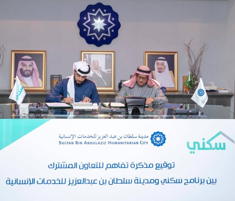 وقع نائب الرئيس التنفيذي لمدينة سلطان بن عبدالعزيز للخدمات الإنسانية عبدالله بن حمد بن زرعة والمشرف على الإسكان المؤسسي بوزارة الإسكان المهندس عبدالله بن عبدالرحمن بن سعيد، اتفاقية تعاون بين برنامج «سكني» ومدينة سلطان بن عبدالعزيز، يتولى من خلالها البرنامج تقديم خدمات سكنية لمستحقي الدعم السكني من منسوبي مدينة سلطان بن عبدالعزيز.