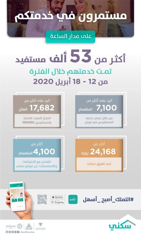 وتجاوب حساب العناية بالمستفيدين (SaudiHousingCC@) على منصة «تويتر» مع استفسارات المواطنين بأكثر من 7100 تفاعل ورد عبر الحساب الذي خصصه «سكني» لمستفيديه للإجابة على كافة أسئلة واستفسارات المواطنين على مدار الساعة، امتداداً لحرص البرنامج على خدمة كافة المواطنين وتلبية رغباتهم وتطلّعاتهم.