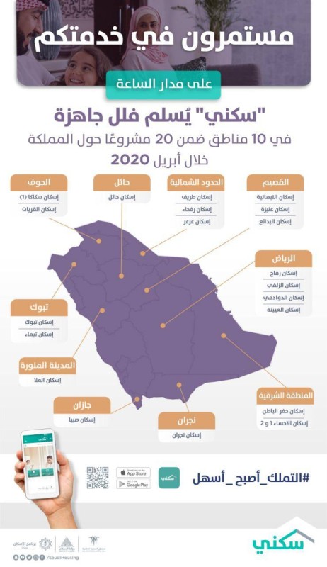 واصل برنامج «سكني» التابع لوزارة الإسكان تسليم الفلل الجاهزة في عدد من مشاريع الوزارة في مختلف مناطق المملكة، حيث شمل التسليم خلال شهر أبريل الماضي 20 مشروعاً في 10 مناطق حول المملكة، إذ تمّت إجراءات التسليم بعد استكمال المستفيدين عمليات الحجز وتوقيع العقد النهائي، بالتزامن مع فترة الاحترازات الصحية التي أعلنت عنها الجهات المعنية للحد من انتشار فايروس كورونا.