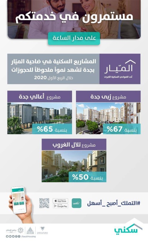 ارتفعت نسب الحجوزات في مشاريع ضاحية الميّار السكنية بجدة - إحدى الضواحي السكنية الكبرى ضمن برنامج سكني - إلى معدلات مرتفعة خلال الربع الأول من العام الحالي 2020، إذ تجاوزت الحجوزات 60% ضمن 3 مشاريع بأسعار منافسة وتصاميم متنوعة في بيئة متكاملة المرافق الخدمية تحتضنها محافظة جدة، ومتاح حجزها إلكترونياً عبر موقع وتطبيق سكني على الرابط sakani-names.housing.sa أو زيارة المنصة الإلكترونية لاستعراض كافة الخيارات السكنية والحلول التمويلية التي يقدمها البرنامج وغيرها من التسهيلات والمبادرات.
