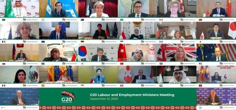 وأوضحوا في البيان الختامي لوزراء العمل والتوظيف أن جائحة فايروس كورونا المستجد أوجدت آثاراً كبيرة على أسواق العمل الوطنية والعالمية؛ حيث انخفضت ساعات العمل بحوالى 14% خلال الربع الثاني لعام 2020، وهو ما يعادل خسارة 400 مليون وظيفة بدوام كامل، والأشخاص العاملين في الاقتصاد غير الرسمي الذين يمثلون 1.6 مليار عامل، والفئات ذات التمثيل المنخفض مثل الشباب والنساء وذوي الاحتياجات الخاصة، هم من بين أولئك الذين تأثروا أكثر من غيرهم في سوق العمل، مقرين أن خسارة الوظائف وانخفاض ساعات العمل وتعطل علاقات العمل وخسارة الدخل ستُعرض الكثير من الأشخاص إلى الفقر، وأنماط العمل غير الرسمية، وإلى مختلف أشكال الاستغلال، مدركين أن الشباب قد تأثروا تأثيراً حاداً، وأن هناك خطرا بأن مخرجات سوق العمل على المدى الطويل قد تتأثر بصورة سلبية إذا لم تكن هناك خطط تعافٍ فعالة على المستوى الوطني وعلى المستوى الدولي.