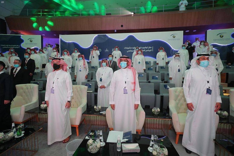 وقّعت هيئة المساحة الجيولوجية 4 عقود لمشاريع البرنامج العام للمسح الجيولوجي، مع شركة ساندر جيوفيزكس العربية المحدودة، وشركة أكس كاليبر أيربورن جيوفيزكس، وهيئة المساحة الجيولوجية الصينية، وائتلاف إنترناشيونال جيوساينس سيرفيسز وهيئة المساحة الجيولوجية الفنلندية، أمس (الأحد) برعاية وزير الصناعة والثروة المعدنية رئيس مجلس إدارة الهيئة بندر الخريّف.