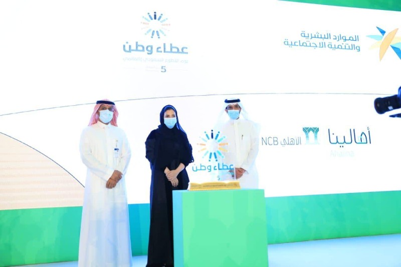 تقديراً لدوره الريادي ضمن مساهماته المجتمعية ودعمه لتنمية قطاع التطوع، كرّم وزير الموارد البشرية والتنمية الاجتماعية المهندس أحمد الراجحي، البنك الأهلي التجاري، لدعمه وشراكته في إنجاح يوم التطوع السعودي والعالمي والفعاليات المصاحبة له، خلال حفل يوم التطوع السعودي والعالمي، الذي أقيم تحت شعار «عطاء وطن». وتسلّم تكريم البنك الأهلي نائب الرئيس رئيس دائرة المسؤولية المجتمعية في البنك الأهلي بسمة الجوهري، التي ثمّنت هذا التكريم وأعربت عن فخرها بأن يكون البنك الأهلي شريكاً لهذه المبادرة، إذ أتاح البنك الأهلي الفرصة لـ3322 متطوّعا ومتطوعة من موظفي البنك للمساهمة في خدمة وطنهم، وذلك من خلال تقديم 14467 ساعة تطوعية تم استثمارها من أجل المجتمع، بقيمة اقتصادية بلغت 1.5 مليون ريال لتلك المبادرات، وذلك ضمن مسيرة البنك التي امتدت عدة أعوام في مجال العمل التطوعي.
