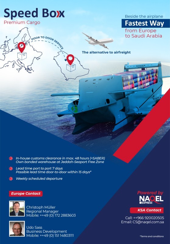 ويتميز المنتج بسرعة التوصيل على مستوى الشحن البحري خلال أسبوعين، وتخفيض التكاليف بشكل كبير جداً مقارنة بالشحن الجوي، وقد جرى تحديد ميناء جنوة الإيطالي نقطة الربط الرئيسية التي يتم من خلالها تجميع كل الشحنات من أوروبا، وشحنها إلى ميناء جدة الإسلامي في مدة قياسية، ليجري تخليصها جمركياً من خلال محطة شركة ناقل في منطقة الإيداع بالميناء، مع إمكانية تخزينها في منطقة الإيداع حسب رغبة العملاء، وبعد ذلك توصيلها إلى مناطق ومدن المملكة كافة من خلال الشبكة الخاصة بشركة ناقل.