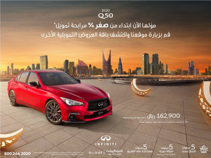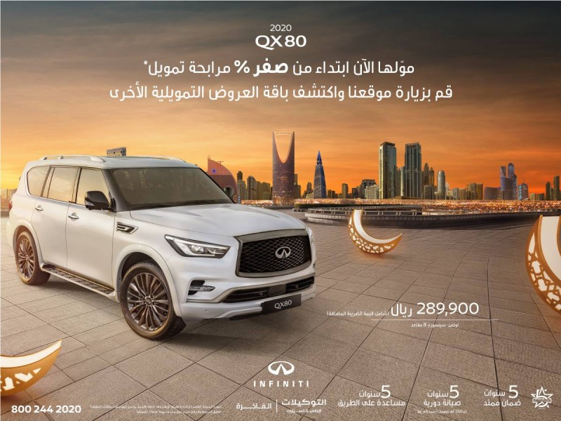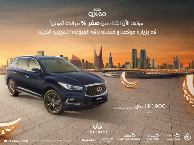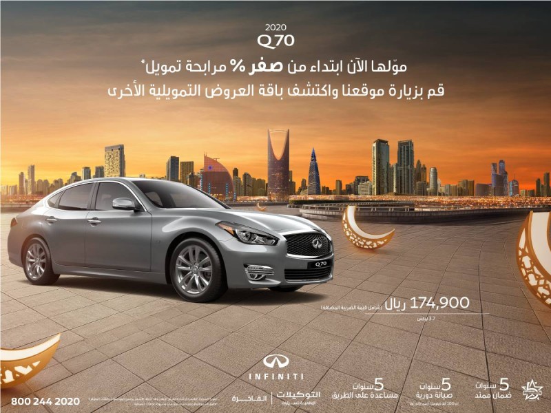 بمناسبة شهر رمضان المبارك أعلنت شركة التوكيلات العالمية للسيارات الفاخرة الوكيل الحصري لعلامة سيارات إنفينيتي التجارية في المملكة إطلاق «عروض موّلها الآن وامتلك إنفينيتي» التي تشمل طرازات QX80 القمة في الرفاهية وQX60 العائلية المتعددة الاستعمالات وسيارات السيدان الفاخرة والرياضية Q70 وQ50 موديل 2020.