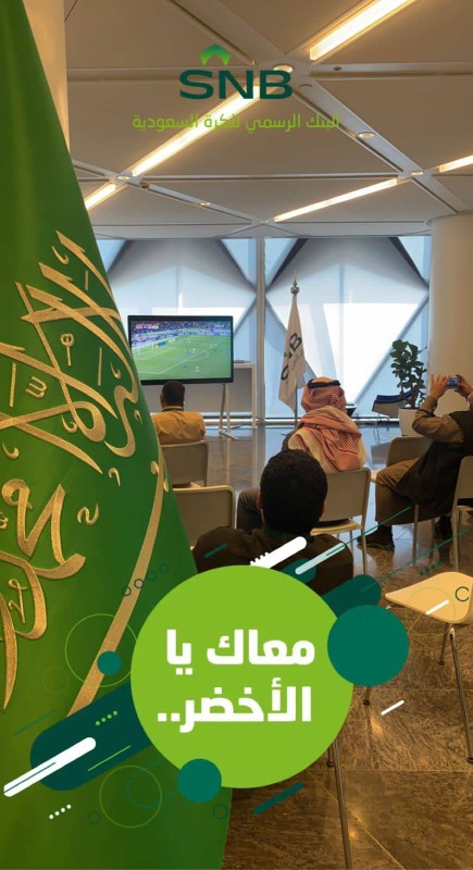 انطلاقاً من مسؤوليته الوطنية ودعماً لمنتخبنا الوطني، ساند البنك الأهلي السعودي المنتخب في رحلته إلى كأس العالم، إثر إقامته عدداً من الفعاليات داخلياً وخارجياً لدعم منتخبنا السعودي خلال لقائه الأخير مع فريق المنتخب الياباني ضمن تصفيات نهائي كأس العالم، وذلك من خلال شراكته الحصرية والرسمية مع الاتحاد السعودي لكرة القدم تحت شعار «معاك يا الأخضر.. ننافس عالمياً»، وتجسيداً لهويته الاستراتيجية معاً نصنع الغد.