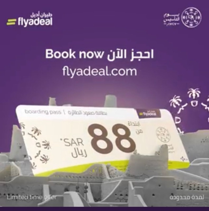 وتأتي هذه المناسبة اعتزازاً بالجذور الراسخة لدولتنا المباركة الممتدة لأكثر من ثلاثة قرون، وفي مقدمة تلك الجهات شركة «طيران أديل» التابعة والمملوكة للمؤسسة العامة للخطوط الجوية العربية السعودية وذلك من خلال إطلاق عروض حصرية وأسعار خاصة على متن رحلاتها الجوية ابتداءً من 88 ريالاً ضمن شبكة رحلاتها الداخلية والدولية المتنامية.