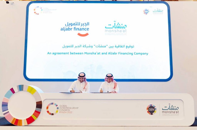شهد المؤتمر العالمي لريادة الأعمال (GEC) الذي انطلقت أعماله في الرياض أخيراً، توقيع اتفاقية شراكة مميزة بين الهيئة العامة للمنشآت الصغيرة والمتوسطة «منشآت» وشركة الجبر للتمويل، تقوم من خلالها الشركة بتقديم منتجات تمويلية لروّاد الأعمال والمنشآت الصغيرة والمتوسطة بقيمة 5.3 مليون دولار، كأول جهة تمويلية في المملكة تبرم اتفاقاً مع «منشآت» لدعم برنامج «جدير» لتحفيز المنشآت الذي أطلقته الهيئة، وتمت مراسم التوقيع بين نائب محافظ الهيئة العامة للمنشآت الصغيرة والمتوسطة محمد المالكي وعضو مجلس إدارة شركة الجبر للتمويل محمد الجبر.