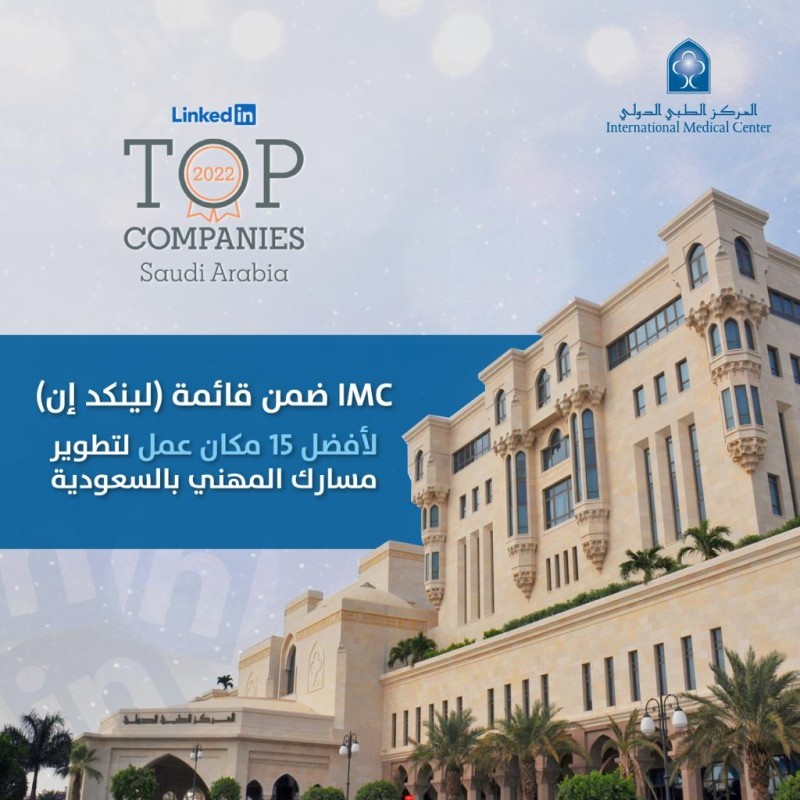 في انعكاس جديد لنجاحاته المتواصلة؛ اختارت شبكة (لينكد إن) الإلكترونية العالمية (المركز الطبي الدولي - IMC)؛ ليكون ضمن قائمتها لأفضل 15 مكان عمل لتطوير مسارك المهني في السعودية لعام 2022، وذلك وفقاً لتصنيف الشبكة الذي يعتمد على سبع ركائز يختص كل منها بعنصر مهم للتقدم المهني، وهي: القدرة على تحقيق التقدم المهني، تنمية المهارات، استقرار الشركة، استقطاب الفرص الخارجية، التقارب بين الموظفين، التنوع بين الجنسين، والخلفيات التعليمية.