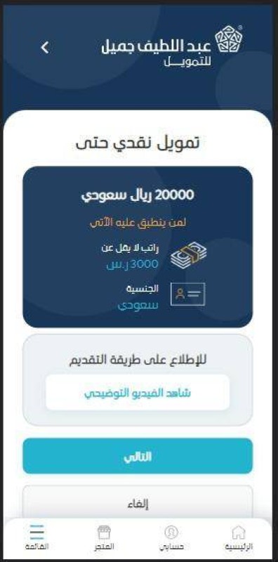 • منتج كاش جميل يتيح للمستخدمين تقديم طلب للحصول على قرض نقدي فوري مع موافقة مبدئية خلال دقائق دون الحاجة إلى كفيل عبر تطبيق للهواتف المحمولة