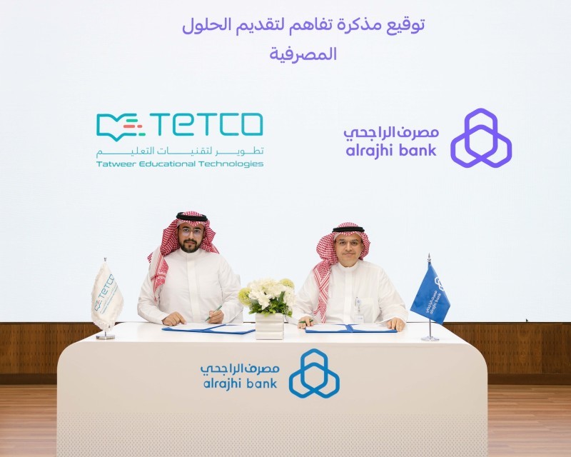 وقع مصرف الراجحي وشركة تطوير لتقنيات التعليم «تيتكو» مذكرة تفاهم لتوفير الحلول المالية الرقمية لقطاع التعليم.