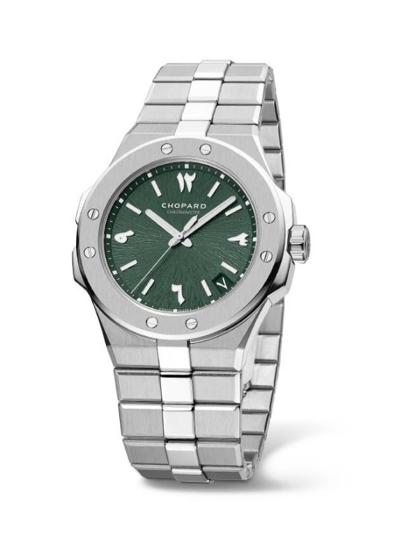 موديل جديد وحصري ينضم إلى مجموعة (Alpine Eagle) للساعات الرياضية الأنيقة، يتميز بمينا باللون الأخضر الصنوبري (Pine Green) تبرز عليه أرقام الأوردو لمؤشرات الساعات وبقطر 41 ملم.