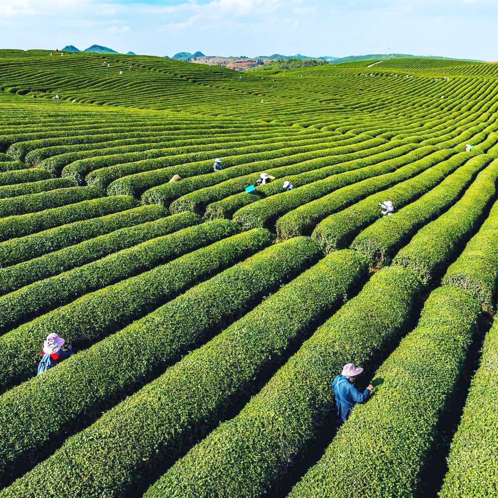 أظهر تقرير حديث، أن فصل الربيع يشهد انتعاشاً في حصاد الشاي، للاستفادة من أشعة الشمس خلال الفترة القادمة.. وتُظهر الصورة مجموعة من المزارعين أثناء جنيهم المحصول. (إيكونومي دايلي الصينية)