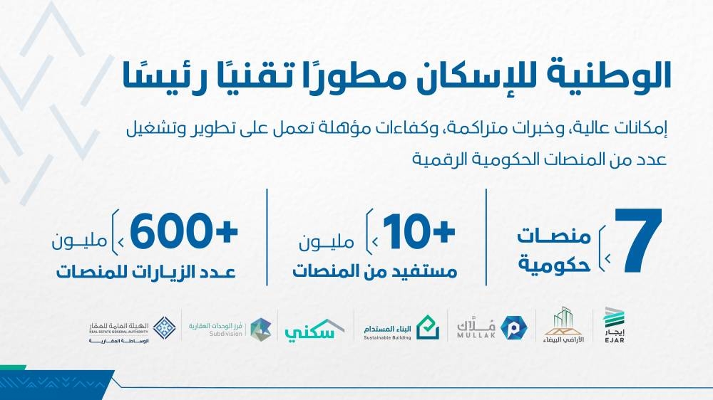 يذكر أن الوطنية للإسكان حصلت على ترخيص أعمال الحكومة الرقمية، لتطوير وتشغيل المنصات الرقمية الحكومية؛ وذلك لسعيها الدائم للوصول بالقطاع العقاري إلى أفضل النتائج التي تسهم في تحقيق رؤية 2030، وعملها المستمر نحو الريادة والتمكين الرقمي في حلول السوق العقارية، من خلال تشغيل عدد من المشاريع والبرامج النوعية التي تقدم حلولًا عصرية ومبتكرة.