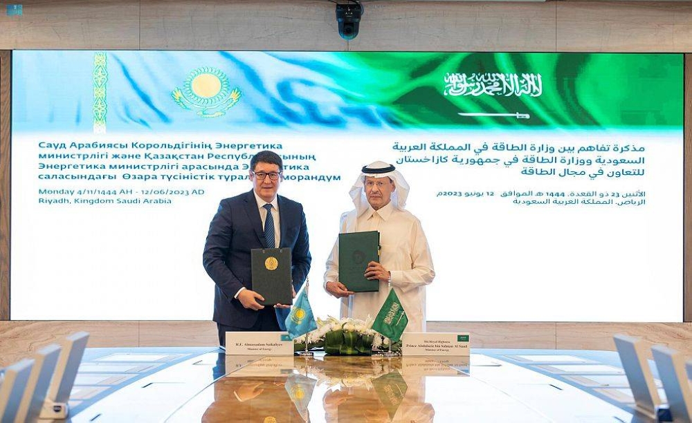 وخلال الاجتماع، وقع وزير الطاقة مع الوزير الكازاخستاني مذكرة تفاهم في مجال الطاقة بين حكومة المملكة وحكومة كازاخستان تشمل تشجيع التعاون في مجالات البترول ومشتقاته، والغاز ومشتقاته، والتكرير، والبتروكيماويات، والكهرباء، والطاقة المتجددة، والهيدروجين النظيف، وكفاءة الطاقة، وتخزين الطاقة، وتطوير التعاون في مجال الاقتصاد الدائري للكربون وتقنياته التي تستهدف الحد من آثار تغير المناخ، مثل: التقاط الكربون، وإعادة استخدامه، ونقله، وتخزينه.