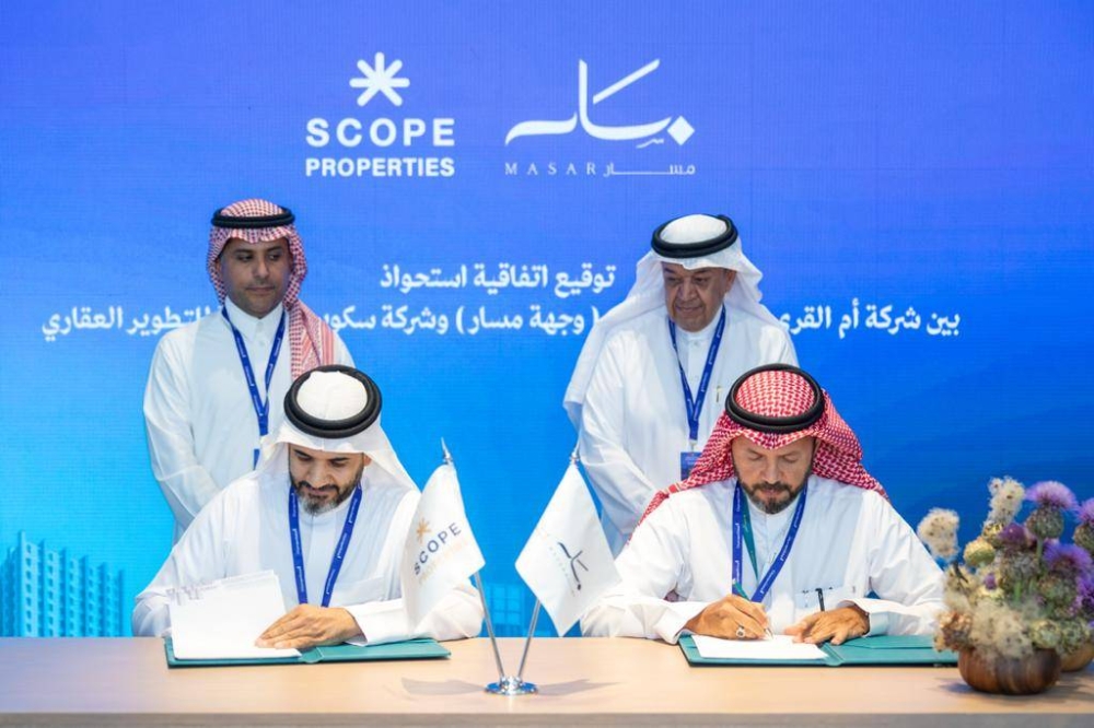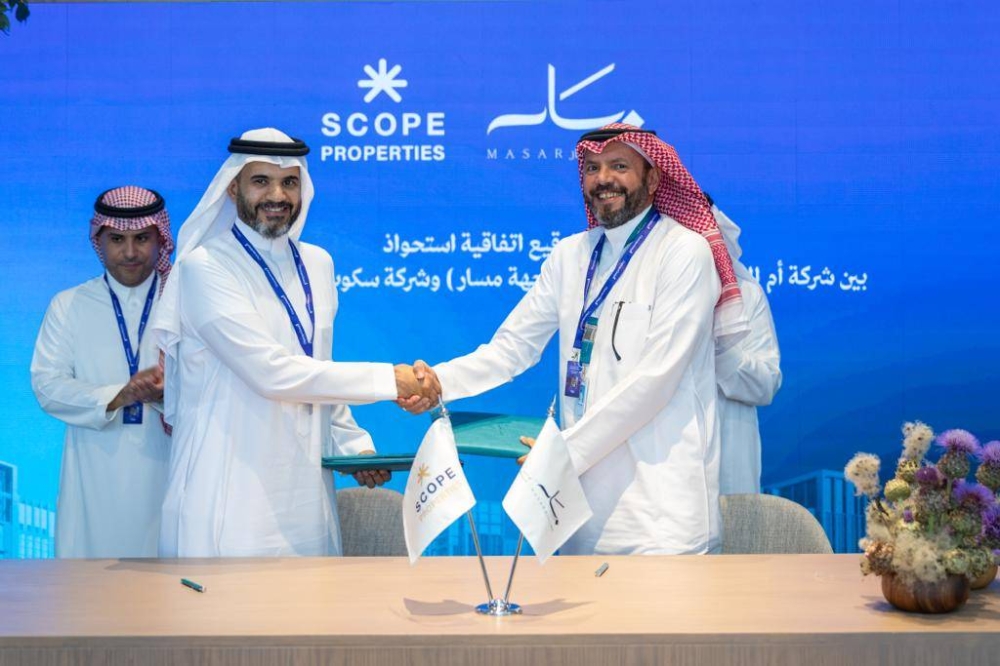 أعلنت شركة أم القرى للتنمية والإعمار، المالك والمطور لوجهة «مسار»، توقيع اتفاقية استحواذ مع شركة سكوب العالمية للتطوير العقاري؛ لتشييد أبراج سكنية بالتعاون مع مشغلين عالميين، باستثمارات تصل إلى 900 مليون ريال سعودي. جاء ذلك على هامش مشاركتها في معرض سيتي سكيب العالمي بوصفها «شريك الوجهة»؛ في حين بلغ حجم الاستثمارات المستقطبة في الوجهة حتى اليوم نحو 40 مليار ريال.