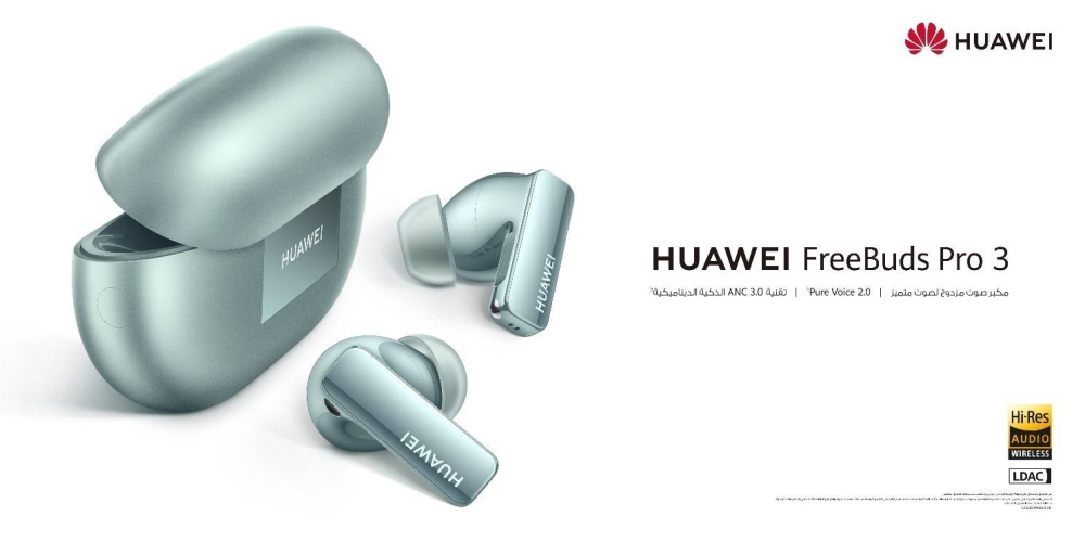 تُعتبر سماعات HUAWEI FreeBuds Pro 3 جيلًا جديدًا من سماعات الأذن من نوع TWS الرائدة التي توازن بين جماليات التصميم وتقنية الصوت الرائدة في فئتها. توفر سماعات الأذن الجديدة تقنية Pure Voice 2.0 وتقنية ANC 3.0 الذكيّة والموازنة التكيّفية الثلاثية، بالإضافة إلى تجربة اتصال ذكية للاستماع السلس، وتقديم تجربة سماعات أذن شاملة للمستهلك المواكب للحداثة ودائم الاتصال. تدعم HUAWEI FreeBuds Pro 3 الترميز L2HC 2.0 و LDAC™، وهي معتمدة من قبل كل من HWA و Hi-Res Audio Wireless.