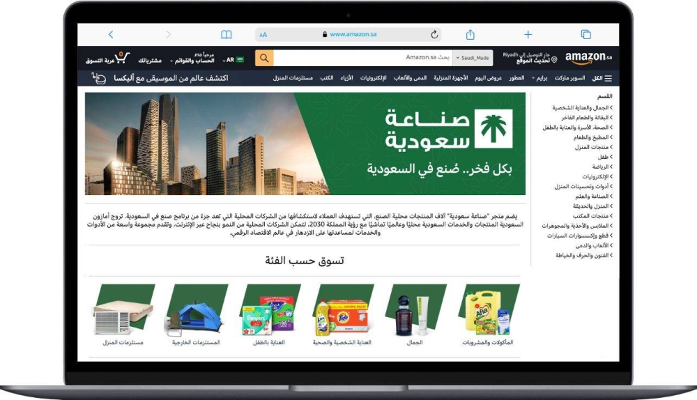 أطلقت أمازون السعودية واجهة متجر «صناعة سعودية» على موقع Amazon.sa، والذي يضم آلاف المنتجات المصنّعة محلياً والمعتمدة من برنامج «صُنع في السعودية» التابع لهيئة تنمية الصادرات السعودية. وتهدف هذه الخطوة إلى ترويج المنتجات المحلية الصنع إلى الملايين من عملاء أمازون، والإسهام في دفع عجلة نمو الشركات الصغيرة والمتوسطة، فضلاً عن تعزيز قطاع ريادة الأعمال في السعودية تماشياً مع رؤية المملكة 2030.