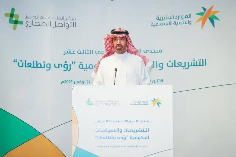 رعى وزير الموارد البشرية والتنمية الاجتماعية المهندس أحمد بن سليمان الراجحي، اليوم (الاثنين)، منتدى الحوار الاجتماعي الثالث عشر الذي تنظمه الوزارة بالتعاون مع مركز الملك عبدالعزيز للتواصل الحضاري بمدينة الرياض، تحت عنوان: «التشريعات والسياسات الحكومية - رؤى وتطلعات»، بمشاركة منظمة العمل الدولية، وممثلي أطراف الإنتاج الثلاثة (الحكومة، وأصحاب العمل، والعمّال).