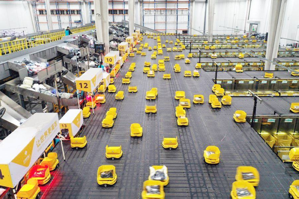 يواصل العديد من المستثمرين في المجال اللوجستي استقطاب الابتكارات الحديثة؛ لتسهيل وتسريع عملية نقل الطرود، وتُظهر الصورة أحد المستودعات اللوجستية خلال اعتماده تقنية نقل الطرود التقنية دون تدخل بشري. (إيكونومي دايلي الصينية)