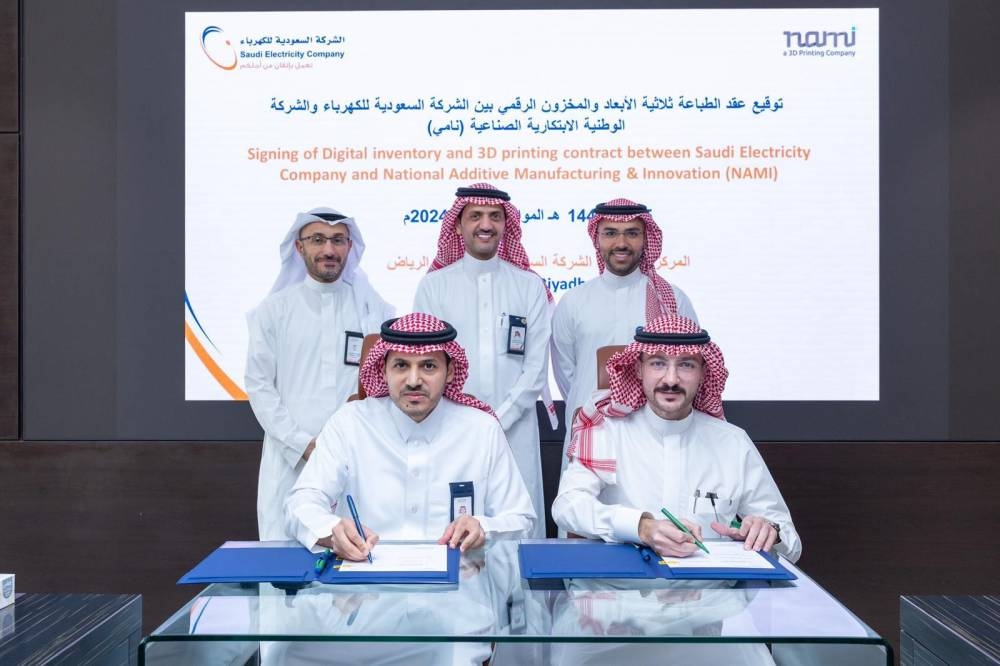وقعت الشركة السعودية للكهرباء اتفاقية الطباعة ثلاثية الأبعاد والمخزون الرقمي مع الشركة الوطنية الابتكارية الصناعية (نامي)، بهدف تصنيع قطع الغيار من خلال الهندسة العكسية وتقنية الطباعة المتقدمة ثلاثية الابعاد.