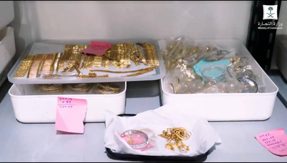 The ministry's monitoring teams, in partnership with the Saudi Authority for Intellectual Property, the Zakat, Tax and Customs Authority, have raided the violating location in the factories area south of Riyadh, and seized 1,368 gold pieces weighing 9,258 grams that bear an unregistered "trademark" stamp and counterfeit marks. The market value of the seized items is estimated at more than 3 million and 700 thousand riyals.