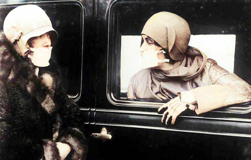 وفي الحالتين الوبائتين لم يظهر لقاح، ولا دواء ناجع. وواصل الفايروس حصد ملايين الأرواح في 1918. وتلك هي حال كوفيد-19 اليوم. مشهد أقنعة الوجوه، والكمامات طاغٍ في الحالتين. ومثلما تردد عن عقوبات بدنية قاسية بحق مخالفين لتعليمات منع التجوال في بعض الدول في الآونة الأخيرة، فإن مسؤول التذاكر المرافق لبصات نيويورك كان يمنع الأشخاص من الركوب إذا لم يكن الواحد منهم واضعاً القناع على وجهه!