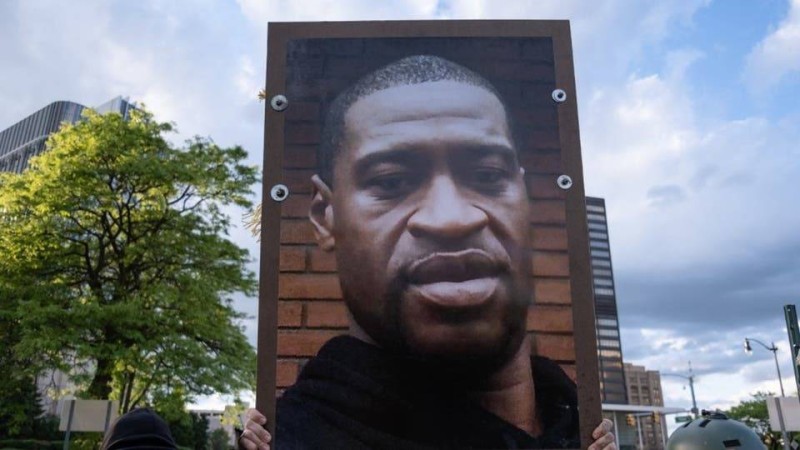 محتجون أمريكيون يحملون صورة فلويد.