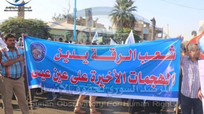 خرج أهالي وسكان الرقة ومنطقة تل تمر بريف الحسكة في مظاهرة حاشدة اليوم (السبت)، احتجاجاً واستنكاراً للتصعيد العسكري من قبل القوات التركية والفصائل الموالية لها على منطقة عين عيسى الواقعة بريف الرقة الشمالي، بحسب ما أعلن المرصد السوري لحقوق الإنسان.