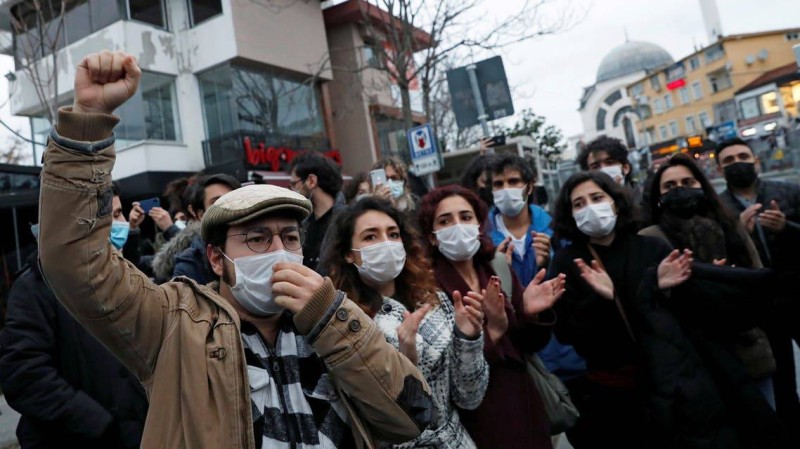 وقضى الطلاب وأعضاء التدريس في جامعة البوسفور «بوغازجي» أسابيع يحتجون على قرار أصدره أردوغان في الأول من يناير بتعيين مليح بولو على رأس المؤسسة التعليمية، وهو أكاديمي ترشح للبرلمان في السابق عن «حزب العدالة والتنمية» الحاكم.