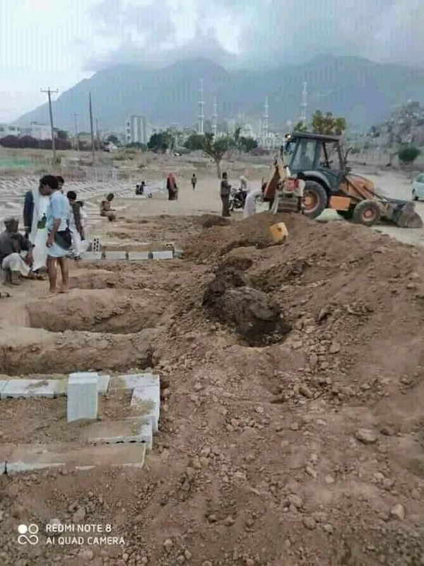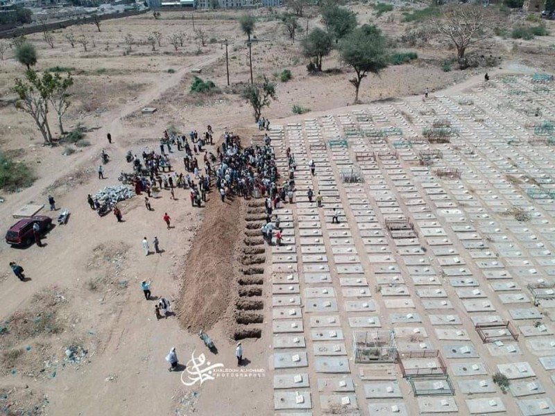 ووثق صحفيون يمنيون عشرات الجثامين التي وصلت إلى مقبرة واحدة في المدينة ليتم دفنهم أثناء دفن الصحفي عبدالقوي العزاني الذي توفي مصاباً بالفايروس ذاته.