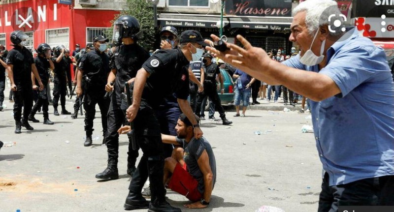 بالمقابل وللسيطرة على الأوضاع الملتهبة، قرر الرئيس التونسي قيس سعيد تجميد أعمال واختصاصات البرلمان ورفع الحصانة عن كافة أعضائه، وإعفاء رئيس الحكومة هشام المشيشي، وتولي السلطة التنفيذية ورئاسة النيابة العمومية. وجاءت هذه القرارات في أعقاب المظاهرات العارمة في العديد من المدن وحرق مقرات حركة النهضة واشتباكات مع قوات الأمن. وقال سعيد، في كلمة مصورة أمس، إن التدابير الاستثنائية اقتضاها الوضع الذي وصلت إليه تونس بعد تهاوي المرافق العمومية واندلاع عمليات حرق ونهب وتوزيع بعض الأطراف الأموال لبعض الأحياء لدفعها إلى الاقتتال الداخلي؛ من أجل إنقاذ الدولة التونسية ومجتمعها. وأكد أن تونس تمر بأدق وأخطر الفترات في تاريخها، مشددا على أنه لا مجال لترك أي أحد يعبث بالدولة ومقدراتها أو يعبث بالأرواح والأموال ويتصرف فيها كمُلك خاص، محذرا كل من يحاول اللجوء إلى السلاح أو التطاول على الدولة ورموزها، بأن القوات الأمنية والعسكرية ستجابهه بوابل من الرصاص.