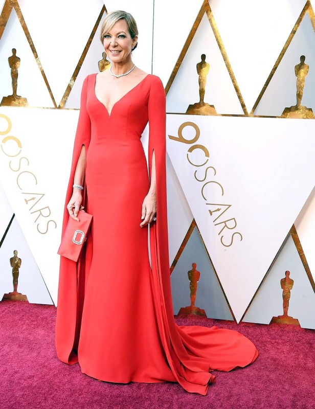 أطلت النجمة أليسون جيني، بفستان أحمر ضيق ذي أكمام طويلة من تصميم المصممة اللبنانية reem acra