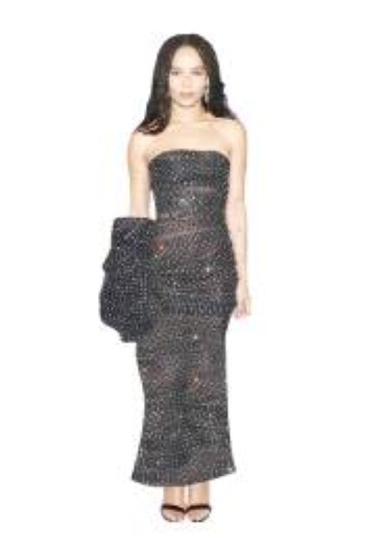 أطلت النجمة زوي كرافتز بفستان أسود قصير مزين بالكريستال من تصميم saint Laurent.