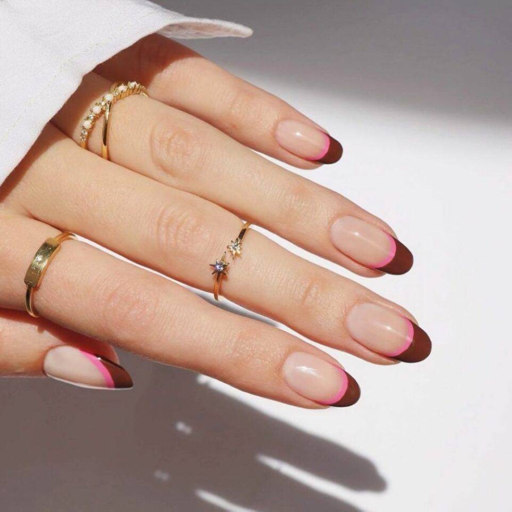 تُعيد هذه الصيحة ابتكار المناكير الفرنسية التقليدية باستخدام لونين مختلفين على أطراف الأظافر، ما يضفي لمسة جريئة وعصرية.
