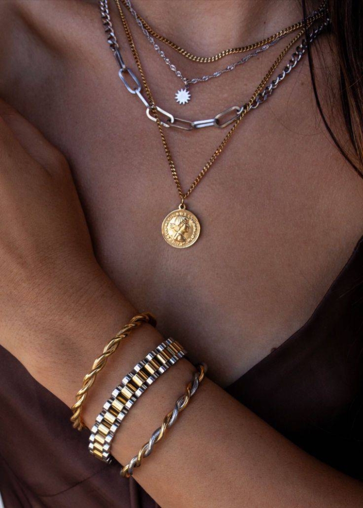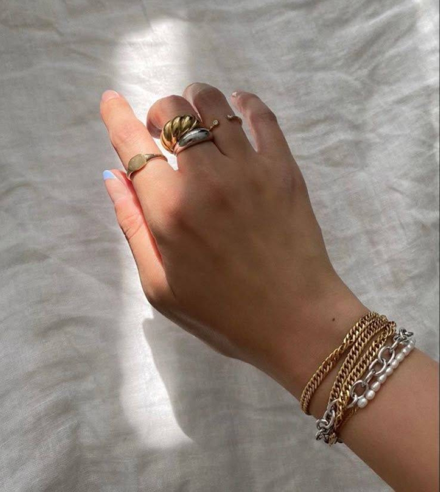 One of the trending styles is to use several chains or bracelets in varying layers, allowing for the freedom to mix gold and silver in one arrangement without feeling conflicting. This style adds a modern and effortless touch.