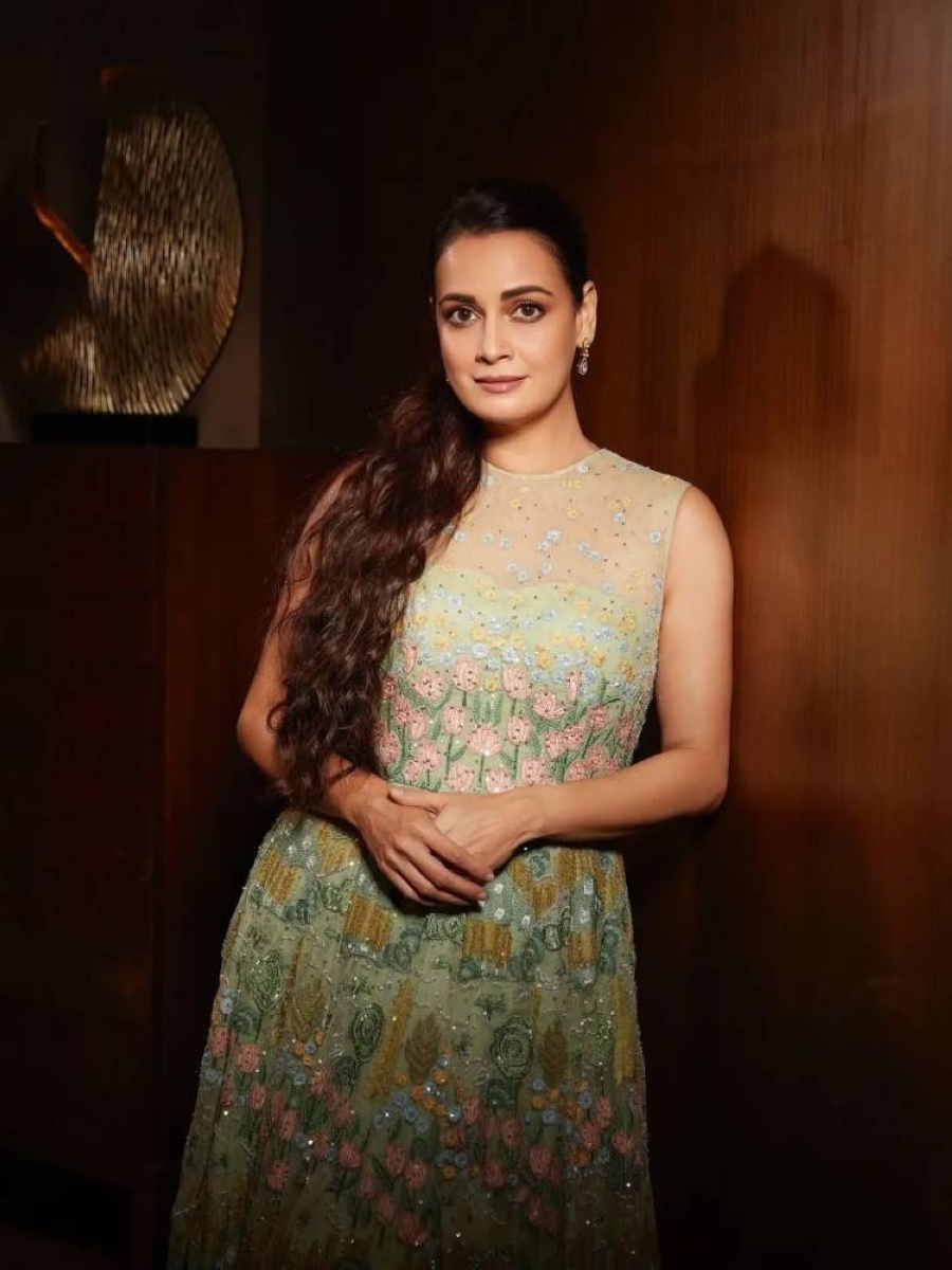 In her latest appearance, Indian star Dia Mirza embodied the concept of responsible elegance through a nature and forest-inspired dress, meticulously designed by Anita Dongre.