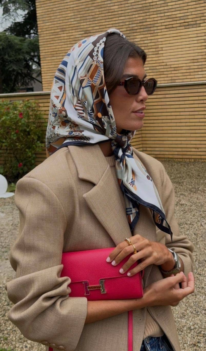 This trend relies on a colorful silk scarf that is tied around the head, serving as a complete aesthetic element that adds warmth and elegance to the look without the need for high costs.