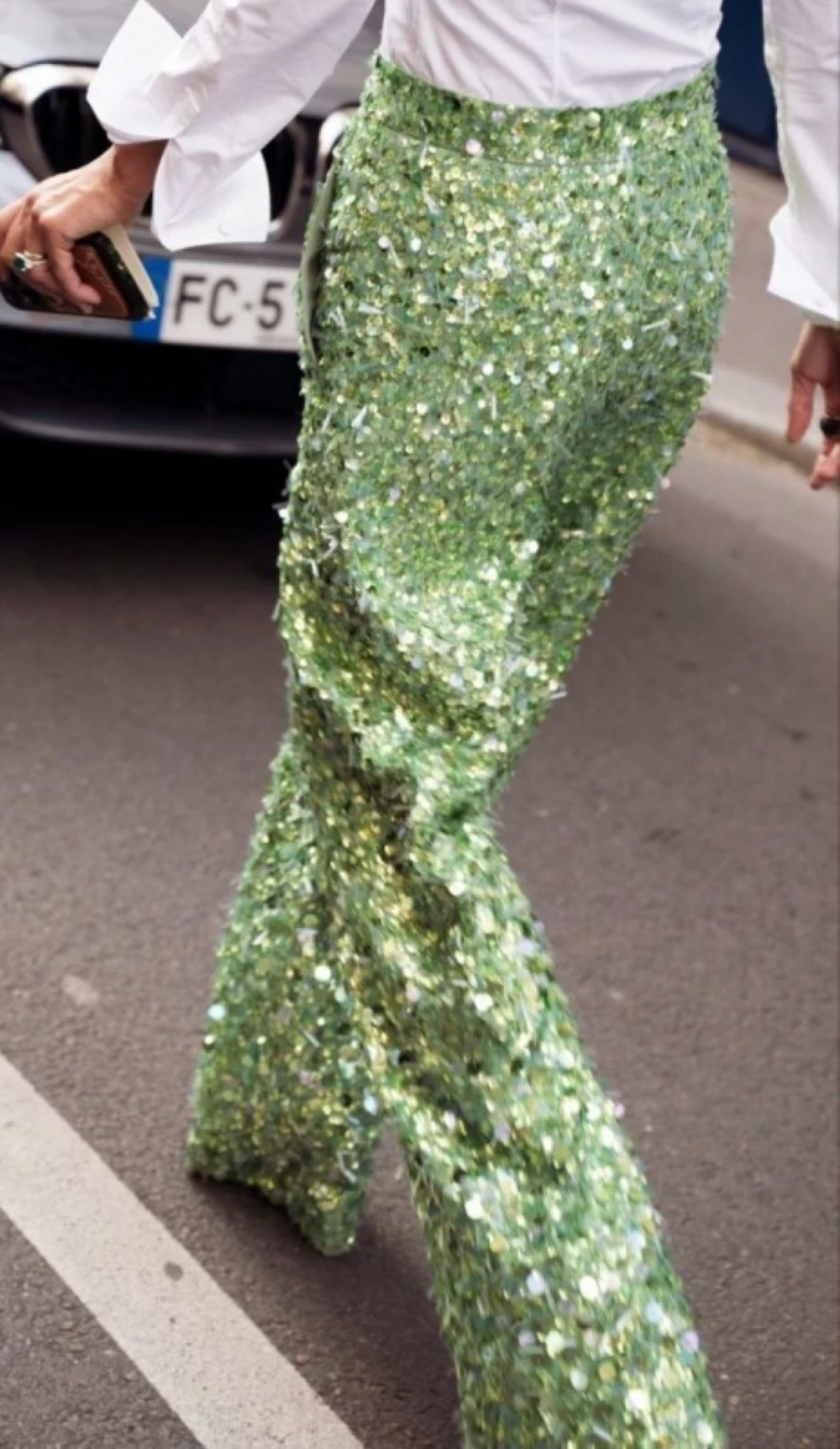 The sequin pants are among the most prominent pieces that give an evening look a strong and striking presence, thanks to their shine that reflects light and adds a luxurious touch to the appearance. The distinctive nature of this type of pants makes it an ideal choice for nighttime events that require calculated boldness and clear elegance, as it combines a strong visual impact with practical comfort in movement.