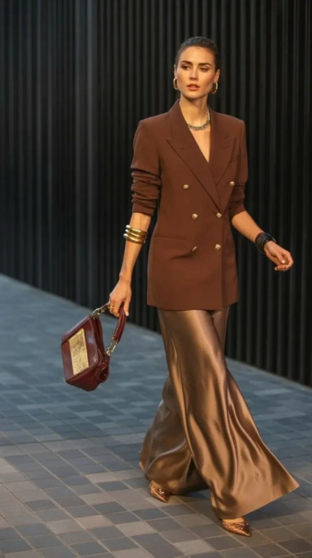This trend reflects a shift in global fashion towards colors that express maturity and identity rather than merely seasonal trends, as copper and bronze have become symbols of a confident feminine style that combines a strong presence with refined taste, affirming that luxury today is measured by smart choices rather than ostentation.