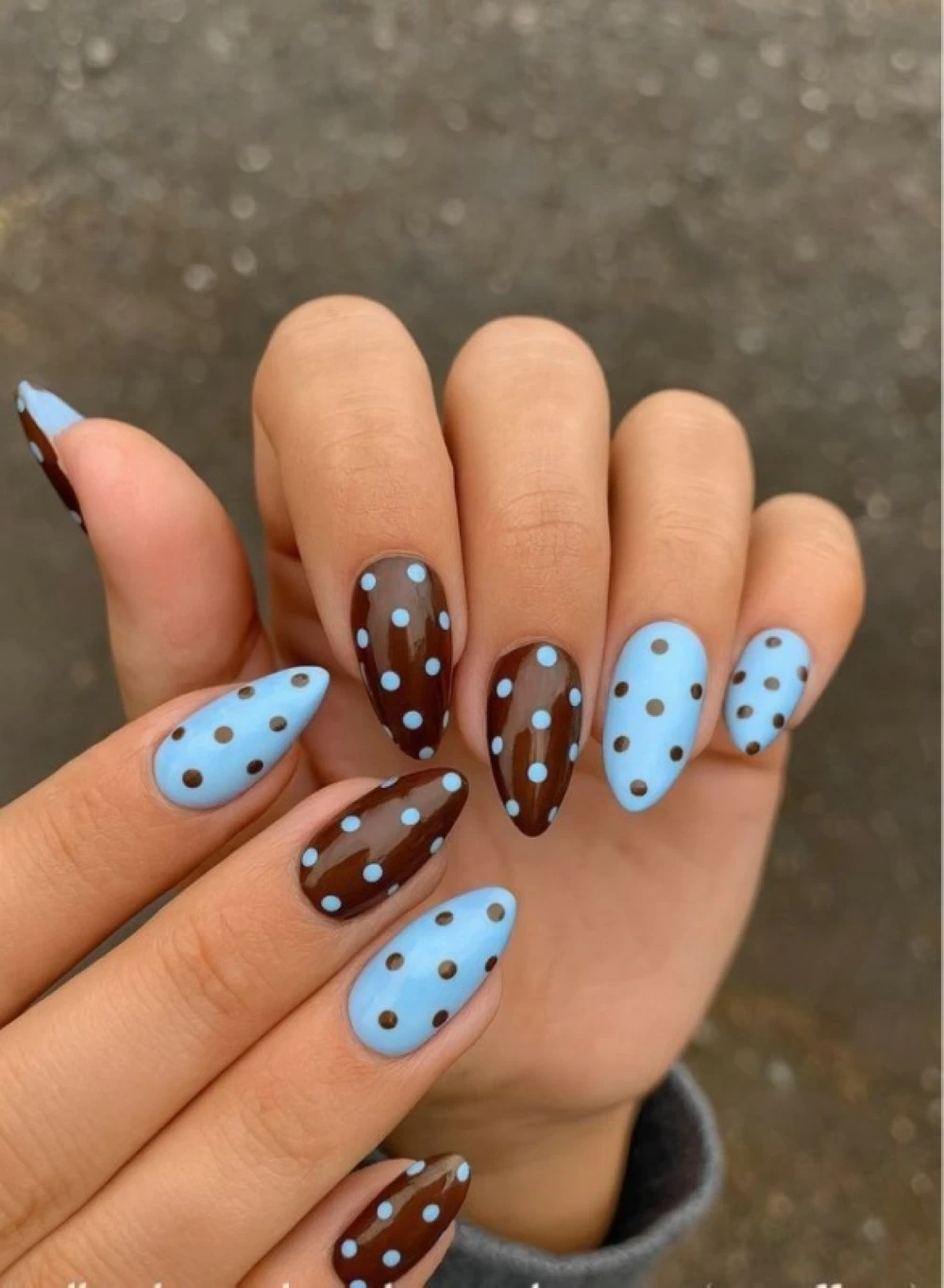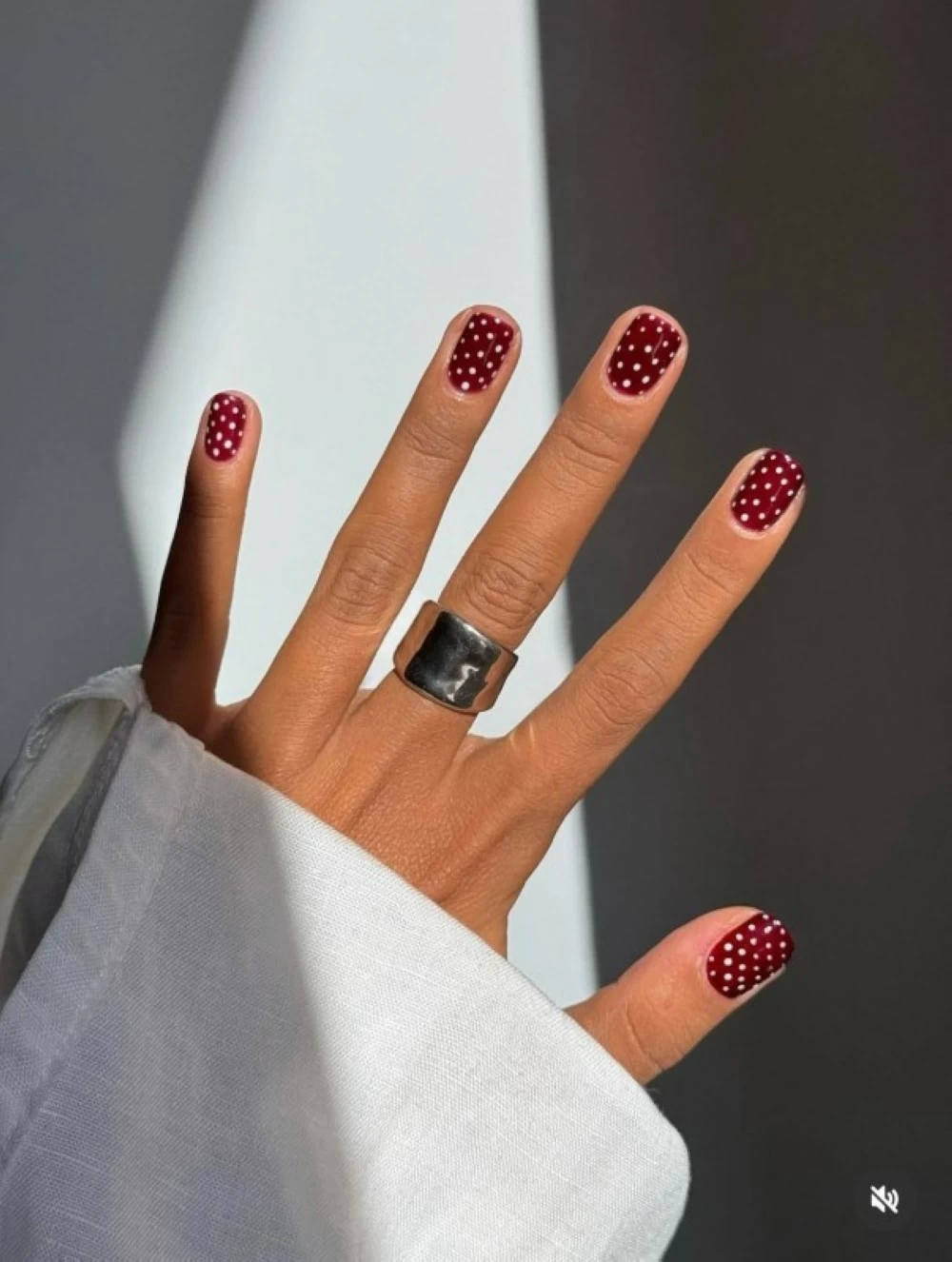 The trend of polka dot nails is one of the striking styles that has made a strong comeback in the beauty scene, inspired by the spirit of the sixties with a modern twist that gives the look a playful and unconventional character. This style relies on the simplicity of the idea versus the strength of the impact, as dots can be executed in different sizes and colors, making it flexible and adaptable to various tastes, from soft daily looks to bold styles for special occasions.